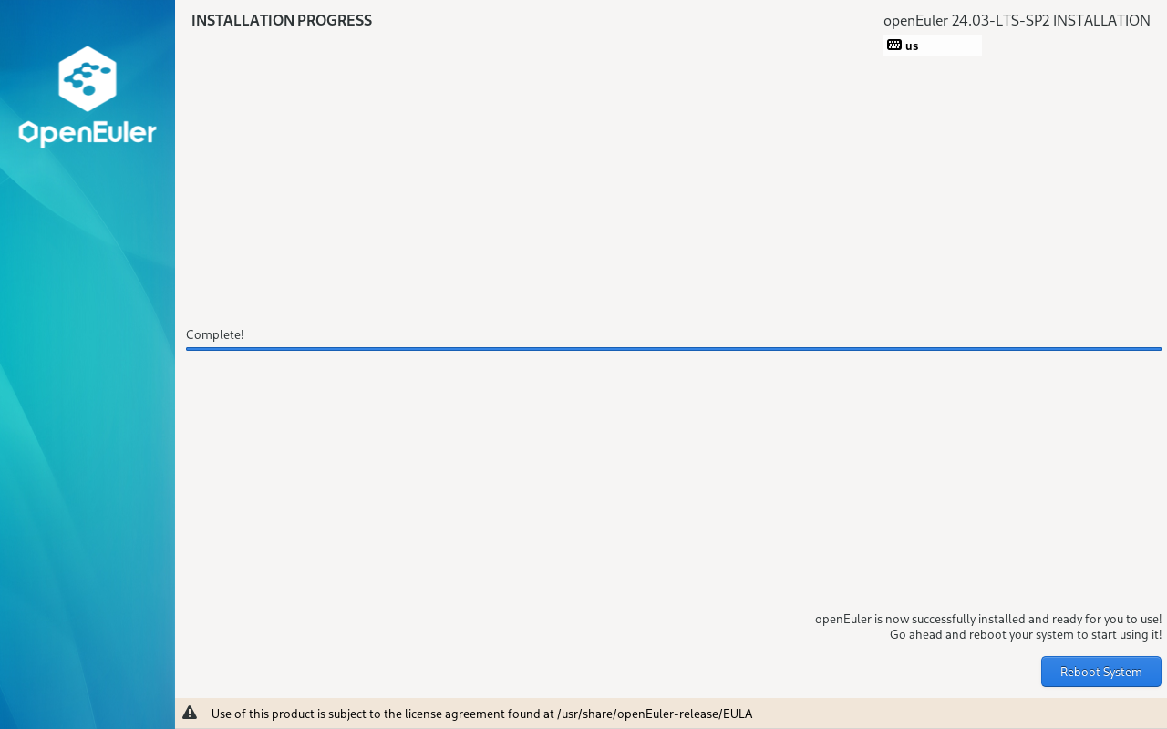 完成后,点击 Reboot System 按钮,重启系统,如下