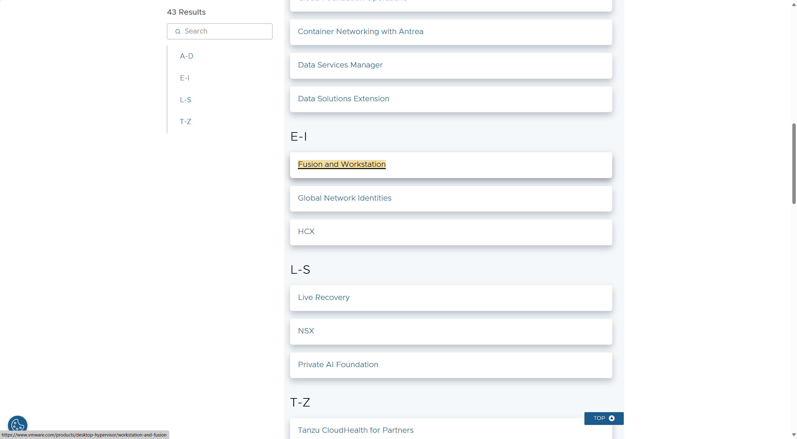 往下滑,找到 Fusion and Workstation 并点击,跳转到新页面,点击