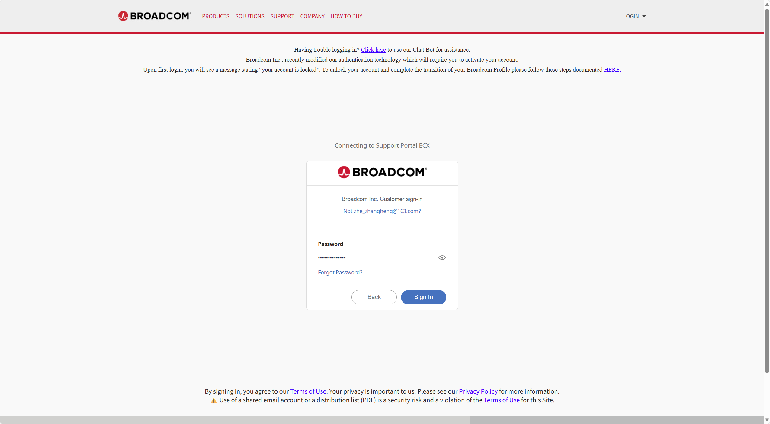 跳转到登录页面(如果未注册,需要先注册博通账号),输入自己的邮箱及密码,博主邮箱 zhe_zhangheng@163.com